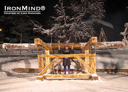 “The record has been described in Icelandic Saga book,” said Kinnunen. “The legend of the Icelander Orm Storulfsson says that he walked three steps with this MONSTER WOODEN LOG which weighed over 650kg and was 10 m long! It took 50 mere mortals to help him placing it on his back! After he took his third step, his back broke under the enormous pressure and he was never the same after that!