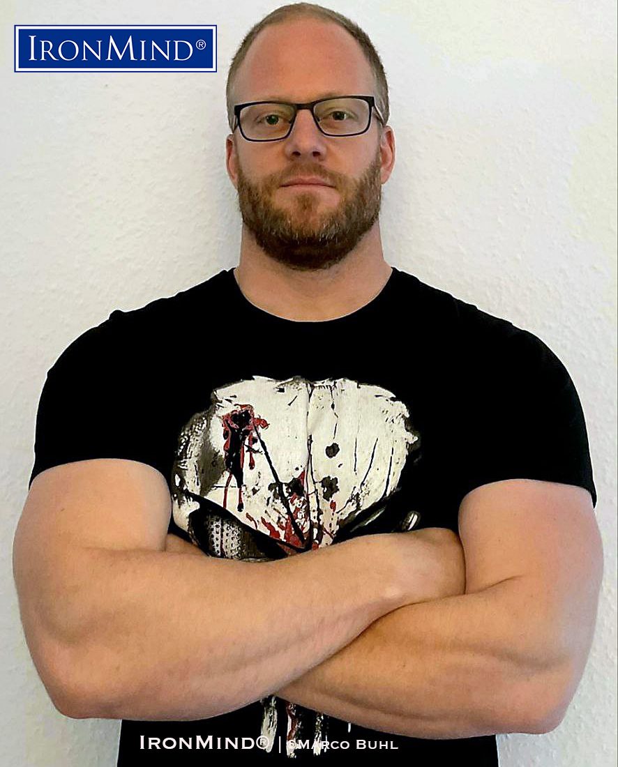 Buhl is 33 years old, stands 190 cm and weighs 106 kg. He told IronMind, “I have many goals in the future. There is so much to accomplish in this type of sport. ...building up my gripper strength, IronMind CoC Silver Bullet over 1 minute, cleaning the Inch dumbbell, competing internationally.