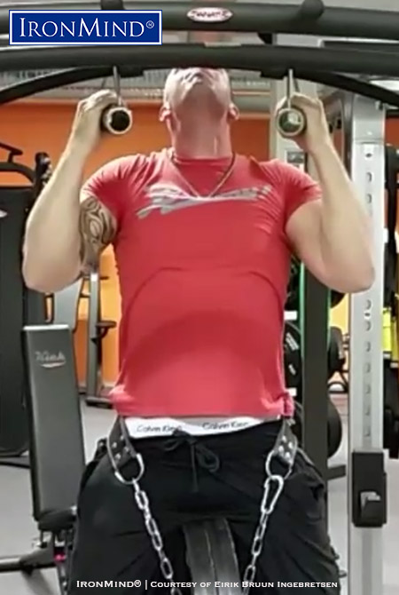 Eirik Bruun Ingebretsen set the inaugural world record for Rolling Thunder pullups, with a total weight of 150.90 kg. IronMind® | Image courtesy of Eirik Bruun Ingebretsen