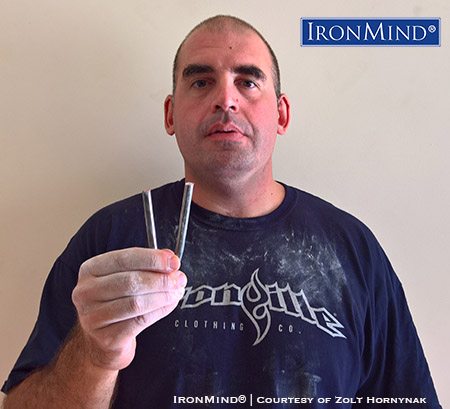 Zsolt Hornyak told IronMind, “I have been bending nails since 2013,” and he’s come a long way, because today it’s official: Zsolt Hornyak has been certified on the IronMind Red Nail, a benchmark short steel bend.